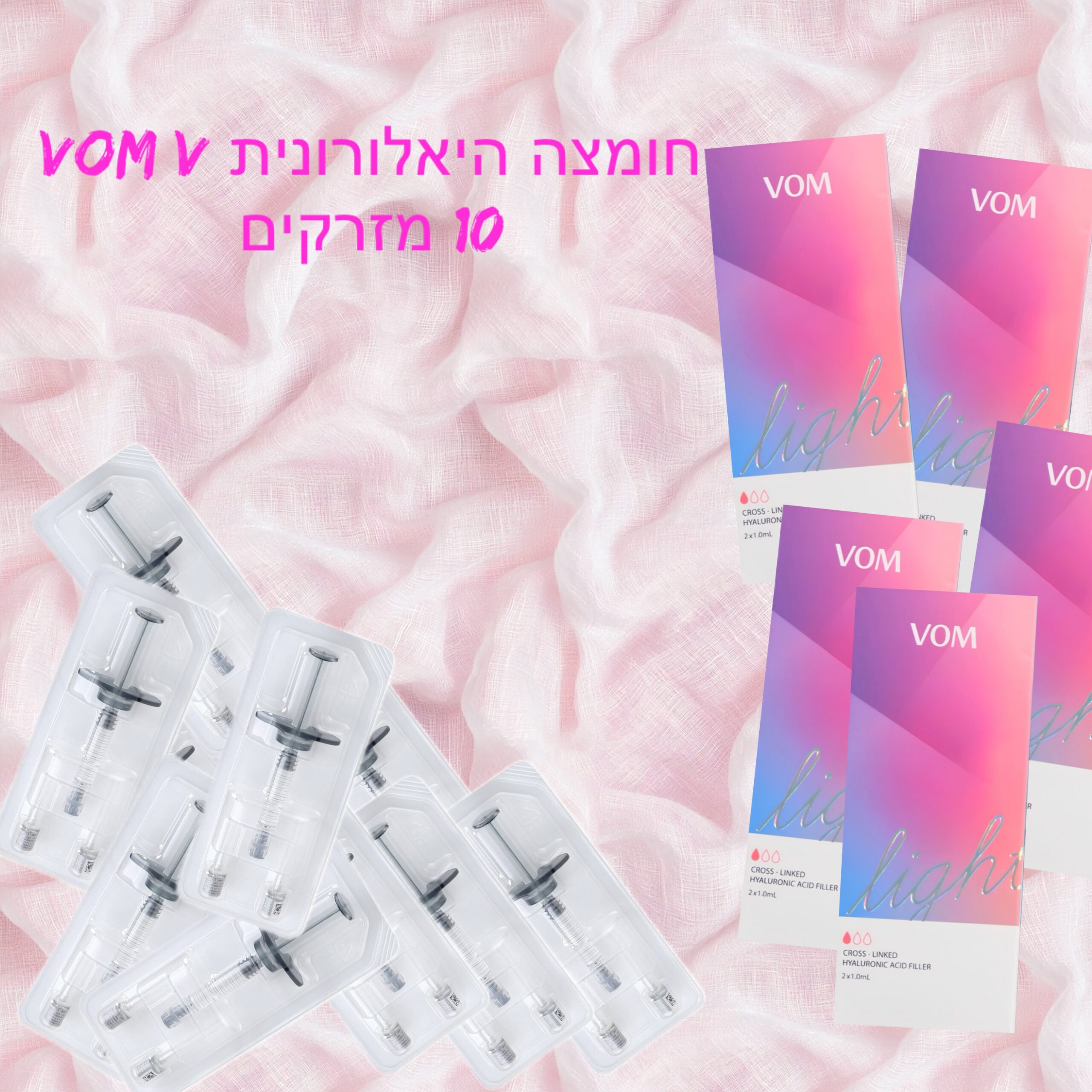 LIGHT VOM V הוא מילוי חומצה היאלורונית לתיקון קמטים בינוניים. למוצר זה נוסחה רב-פאזית ייחודית שהוכנה בטכנולוגיית R2. בשל כך, חומצה היאלורונית בצורת פולימר צולב מונחת בחלקיקי הג'ל ויוצרת תמיסה עם צפיפות וצמיגות מיטביים.